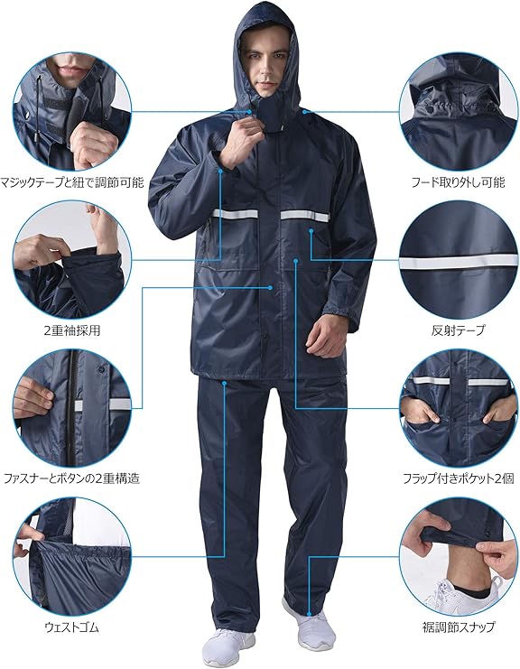 [Fosys] レインウェア 上下セット レインスーツ レインコート メンズ レディース 防水 撥水 アウトドア 自転車 通勤 通学