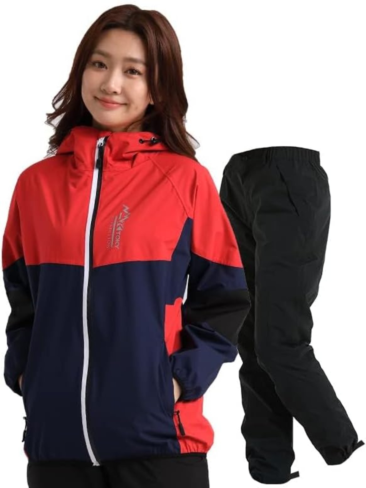 [アラシヤマ] レインウェア レディース 上下セット ゴルフ レインスーツ レインコート マウンテンパーカー 防水 軽量 自転車 d