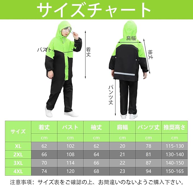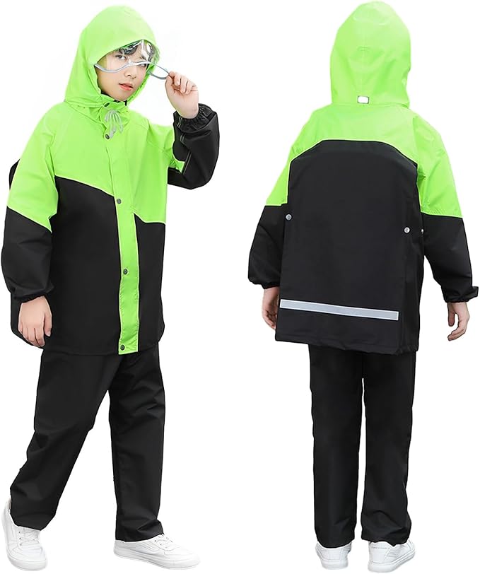 [Formemory] レインコート キッズ 上下セット ポンチョ レインスーツ 子供 女の子 男の子 カッパ子供 ゴム付きの袖 ランドセル対応 透明窓付き 防風 防水ハイネック 通学 子供用 雨具 遠足 梅雨対策 携帯ポーチ付き 雨具