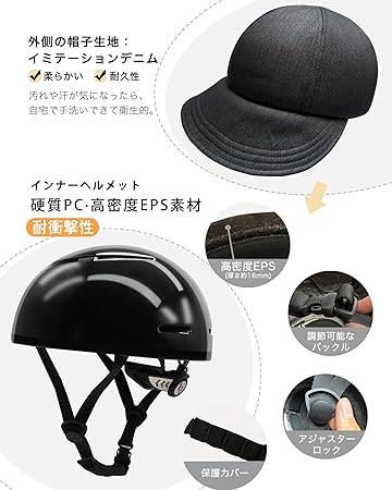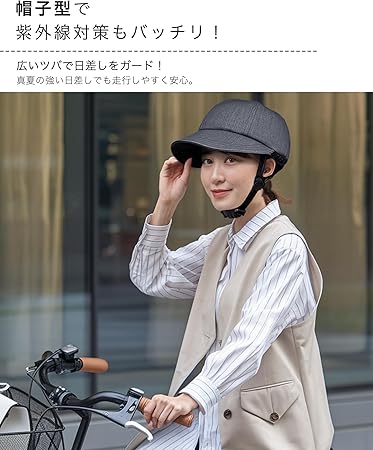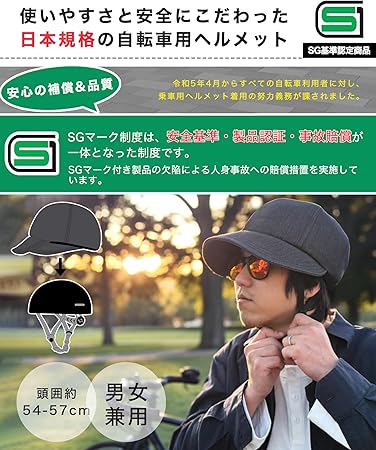 NECPLUS 自転車 ヘルメット【日本基準のSG認証】帽子型ヘルメット 衝撃吸収 つばの大きな帽子 ヘルメッ自転車 超軽量 頭囲54-57cm 調整可能 反射ステッカー付き 通勤 通学 男女兼用 a