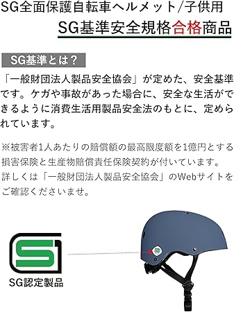 【SG認証 耐衝撃 道路安全法適合】本製品はS G認証、C E認定、CPSC規格、ASTM基準を満たしており、日本のみならず、国際的な安全基準をクリアしています。子供を全方面から護るため、ヘルメットのシェルは高強度で優れた耐衝撃性、衝撃吸収性能を持ち合わせたABS素材を採用し、インナーも衝撃吸収性能に優れた素材を採用しています。衝撃を受けた時に直ちに衝撃を吸収分散し、ケガの可能性を最小限に抑えます。どんなシチュエーションでも大切なお子様の頭部を外部の衝撃からお護りします。