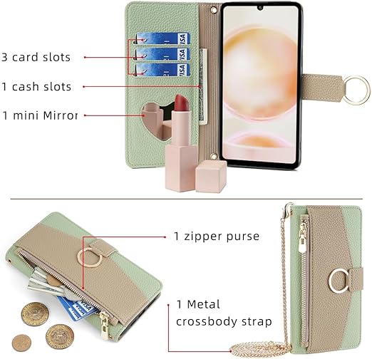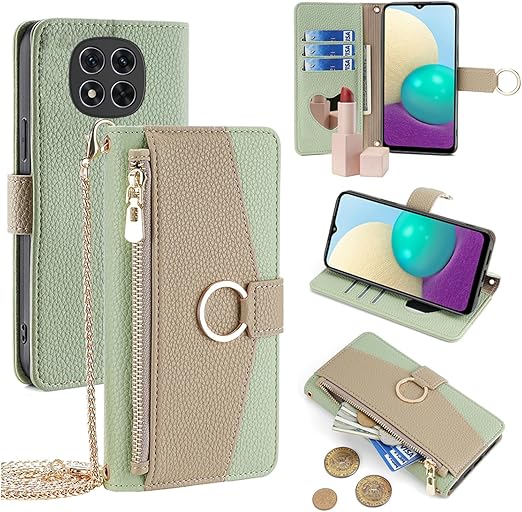 Redmi Note 14 Pro/14Pro+ 5G ケース 手帳型 ショルダー シャオミ レッドミー ノート14プロ プラス 財布型 カバー 肩掛け 斜めがけ 化粧鏡付き 女性 おしゃれ ロングストラップ ジッパー小銭入れ カード収納 横置き 上質な手触り 耐汚れ気質 肌感レザー 防指紋 耐久性 贈り物 COCOCLOUD グリーン