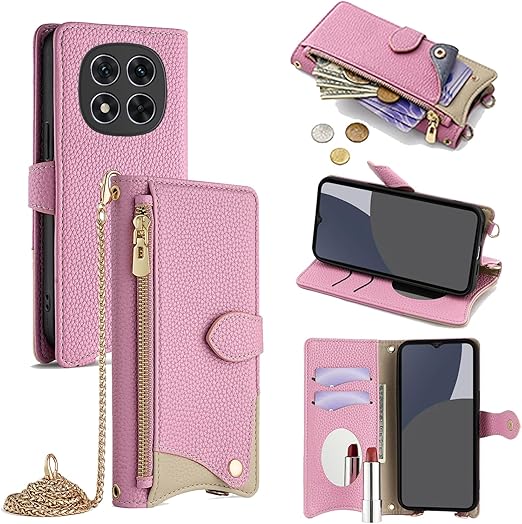 Redmi Note 14 Pro/14Pro+ 5G ケース 手帳型 ショルダー シャオミ レッドミー ノート14プロ プラス カバー 財布型 肩掛け 横+縦 2掛け方 斜めがけ 化粧鏡付き おしゃれ ジッパー小銭入れ カード収納 横置き ロングストラップ 耐汚れ PUレザー 防指紋 高耐久性 女性用 贈り物 COCOCLOUD ピンク