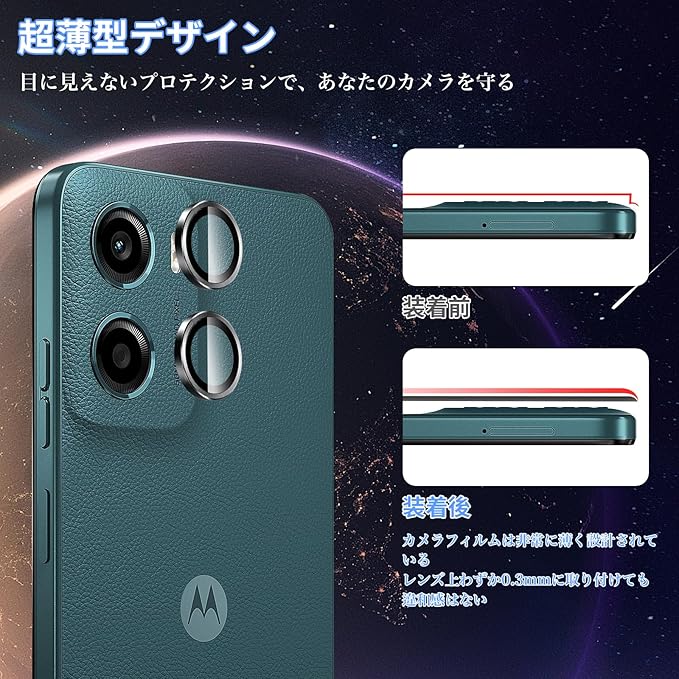 For Motorola Moto G05 カメラフィルム カメラカバー【旭硝子素材 9H強度】耐衝撃 飛散防止 キズ防止 高透過率 指紋・汚れ防止 気泡ゼロ 露出オーバー防止 簡単貼り付け 対応 Motorola Moto G05 レンズフィルム a