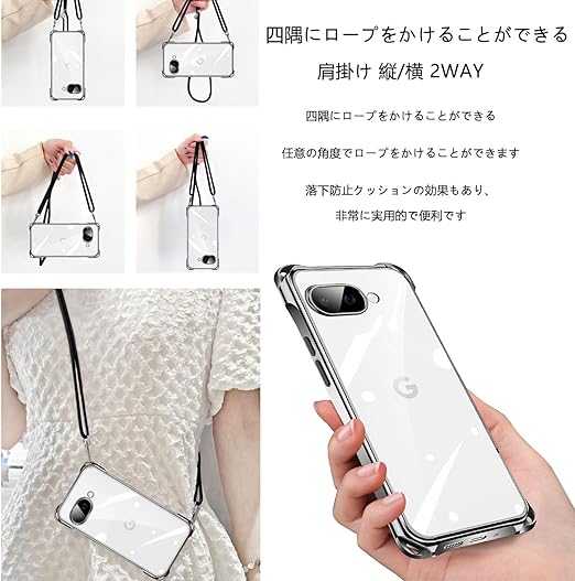 【対応機種】Google Pixel 9aインチ対応なので、機種を間違いないようご注意下さい。シリコンケースには首から下げられるようにショルダーストラップが付いており、まるでアクセサリーのようにスマホを着用できます。落下防止はもちろん、紛失防止にも役立ちます。特に旅行や、小さなお子様がいるお母さんにおすすめ、手荷物がある時にスマホを持ち続ける必要がなくなりますし、スマホを落としたり無くしたりといった心配もなくなります、バッグから携帯を取り出す手間がはぶけます。特に旅行時や、作業、旅行、出張、ショ