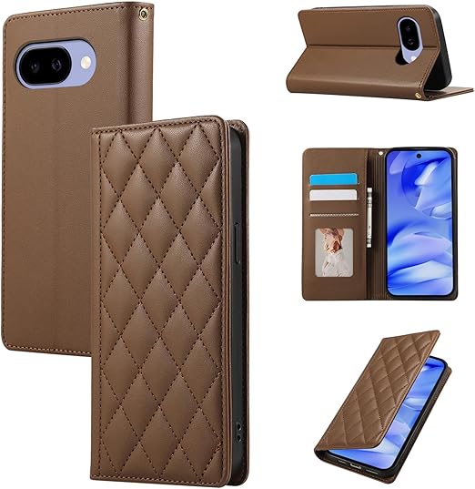 Gedurya Google Pixel 9a ケース 手帳型 グーグル ピクセル9a ケース 財布型 カード収納 RFIDブロッキング Pixel9a 手帳型ケース マグネット式 ダイヤモンド グリッド シェイプ Google Pixel 9a スマホケース ピクセル 9a カバー スタンド機能 携帯カバー - ブラウン a