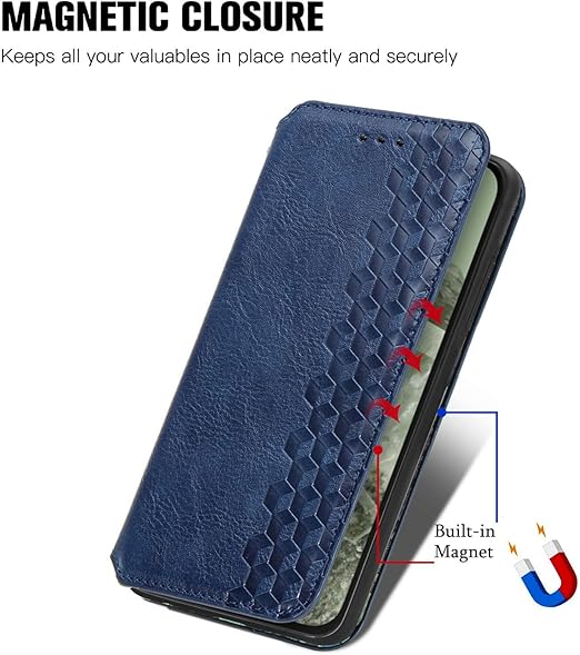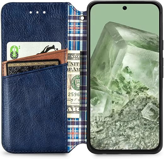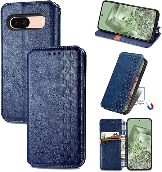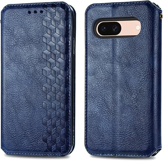 に適用するGoogle Pixel 9A ケース 手帳型 ノートブック型ビジネスフォンケース 携帯電話保護カバー強い吸引力ノートブック型多機能携帯電話ホルスター財布ホルダーバンプパターンテクスチャ耐久性摩擦耐性ケース男性と女性に適した多色オプション (ブルー) a