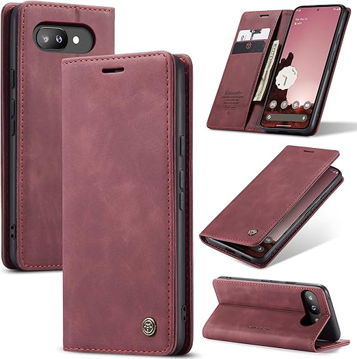 KeeFos ケース Google Pixel 9a 5G 対応 、手帳型、財布型、 カバー 、カード収納財布型、内蔵マグネット、Google Pixel 9a スマホケース カバー、TPU耐衝撃、マグネット スタンド機能、全面保護、薄型、手作り 高級PU レザーケース、手帳型ケース Google Pixel 9a用 レッド a