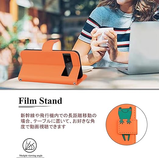Google Pixel 9A ケース 手帳型 Pixel 9A ケース ピクセル 9 A 手帳ケース スマホケース 携帯カバー グーグルピクセル9a カバー 携帯ケース カバー レザー製 カード収納 財布型 ベルトマグネット スタンド機能 カエル かわいい 動物柄 耐久性 黒 (Google Pixel 9A 対応) オレンジ a