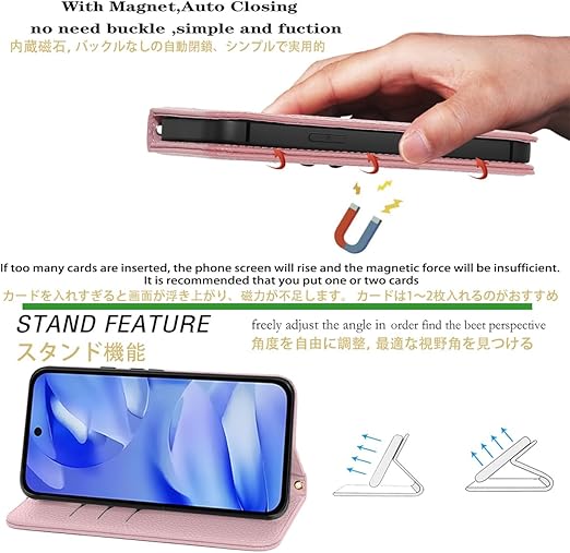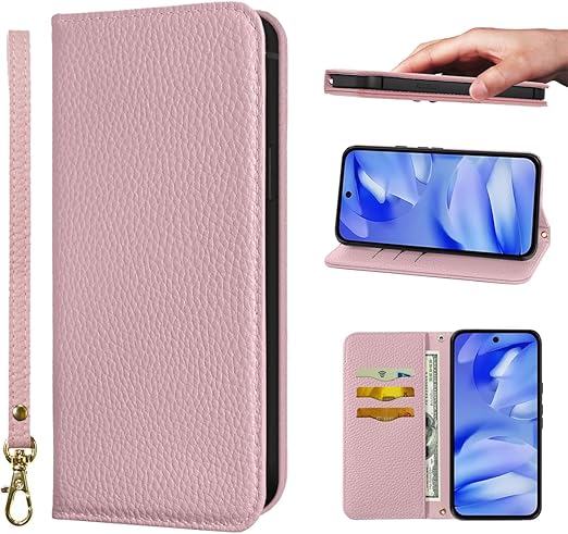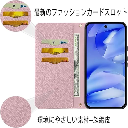 NanHou Google Pixel 9A 5G ケース 手帳型 超繊皮カバー Google 9A 手帳型 耐衝撃 保護カバー 内蔵マグネット 財布型 Pixel 9A 携帯カバー カードポケット スタンド機能 リストバンド - ピンク a