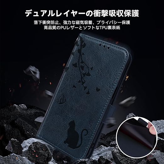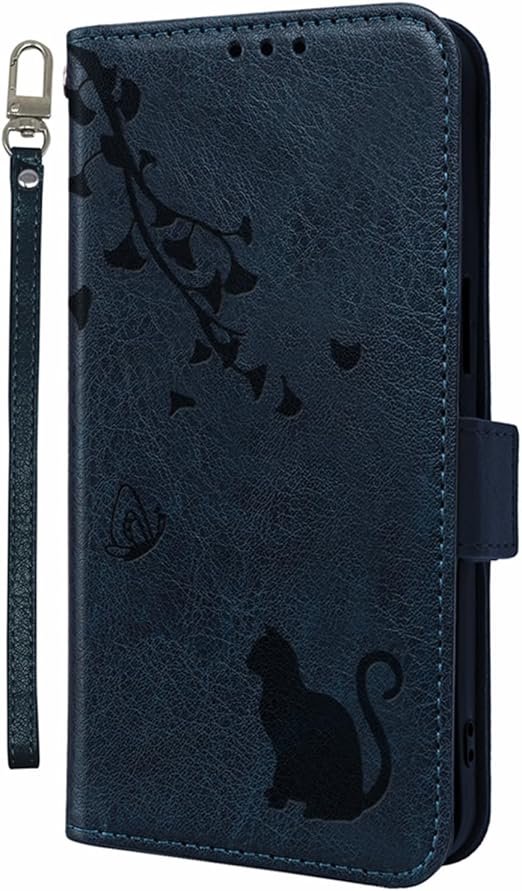 Google Pixel 9A ケース 手帳型 ピクセル9a ケース カバー スタンド機能 pixel 9A スマホケース マグネット カード収納 耐衝撃 グーグル ピクセル9A カバー 人気 ストラップ付き pixel 9a ケース ちょうちょ猫 柔らかい手触り ONETHEFUL Pixel9a ケース 財布型 - 濃紺 a