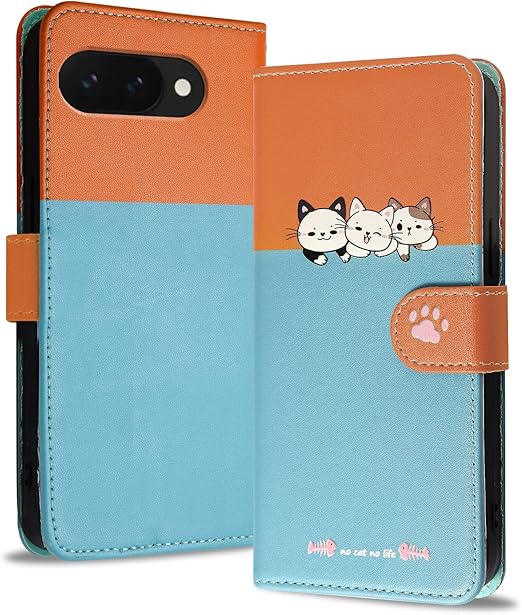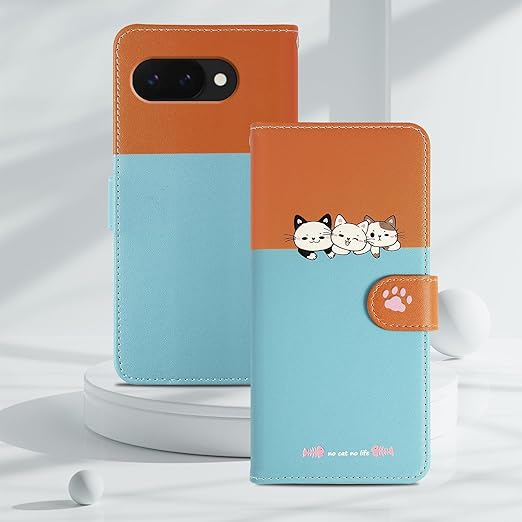 Reddylin 対応 Google Pixel 9A ケース 手帳型 かわいい猫 グーグルピクセル9a ケース 手帳型 財布型 Google pixel 9a スマホケース Googleピクセル9aケース TPU素材 全面保護 カード収納 pixel9a ケース可愛い スタンド機能 6.3インチ 手触りが良い 耐衝撃 -ブルー a