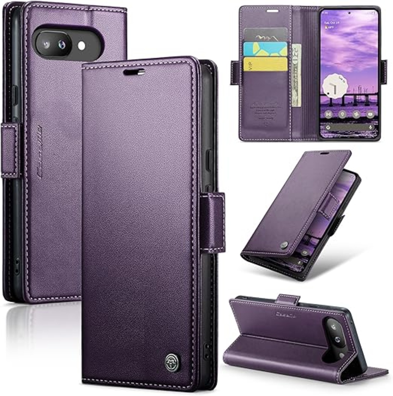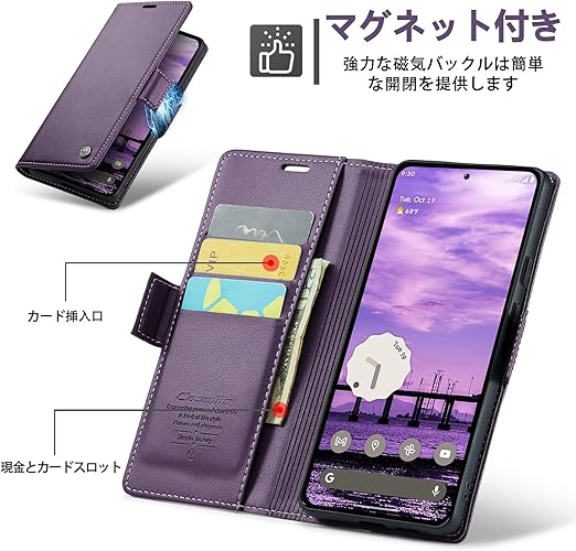 ReHowy Google Pixel 9a 5G ケース 手帳型 PUレザー 携帯便利 衝撃防止 擦り傷防止 全面保護 カード収納 保護カバー 財布型 磁気バックル付き タンド機能付き グーグルピクセル9a 対応 携帯 カバー Google Pixel 9a 用 手帳型ケース パープル a