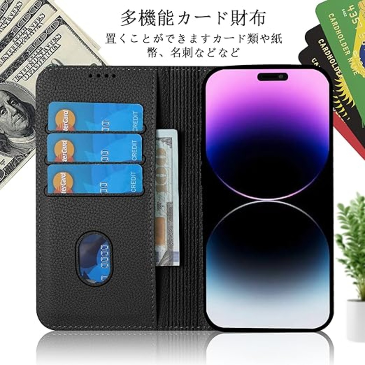 ➂ 横型機能:弊社のピクセル9a 手帳型スマホケーススタンド機能が付き、横向いて斜めに立てて、お好きな角度を調整でき(150°以内)、手に持ってビデオを