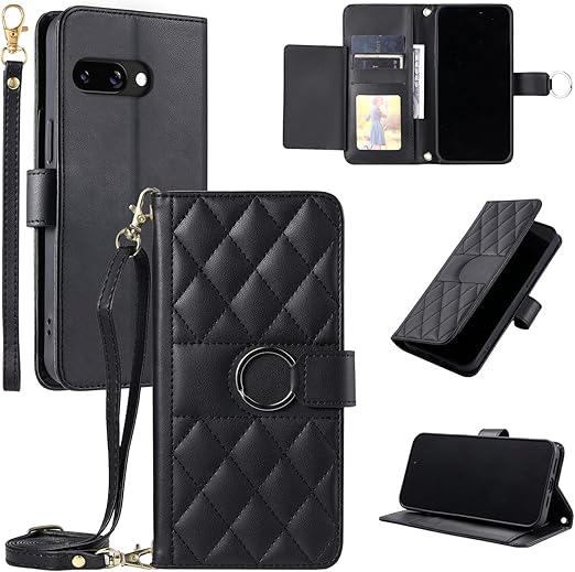 Vokpok Google Pixel 9a ケース 手帳型 グーグルピクセル 9A 財布型 ケース 高級PUレザー おしゃれ 強力マルチカード収納 手首ベルト、斜め肩ベルト両用 ケース, ブラック a
