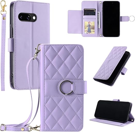 Vokpok Google Pixel 9a ケース 手帳型 グーグルピクセル 9A 財布型 ケース 高級PUレザー おしゃれ 強力マルチカード収納 手首ベルト、斜め肩ベルト両用 ケース, パープル a