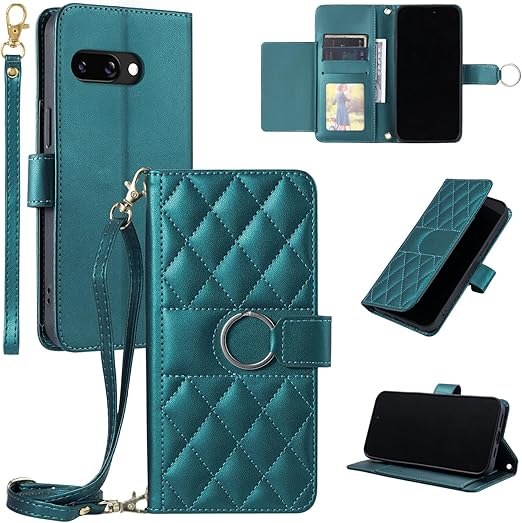 Vokpok Google Pixel 9a ケース 手帳型 グーグルピクセル 9A 財布型 ケース 高級PUレザー おしゃれ 強力マルチカード収納 手首ベルト、斜め肩ベルト両用 ケース, グリーン a