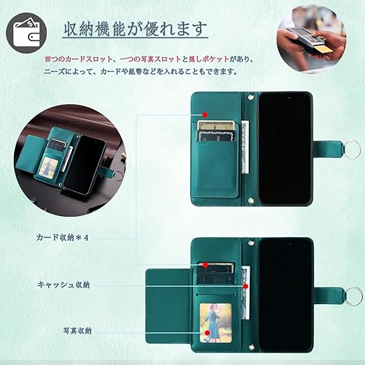 【2つの特徴】①強力マルチカード収納:Pixel 9a 財布型 ケース には カード入れポケット×4、写真ポケット×1、内側現金ポケット×1。がついています、ID /クレジット/デビットカード、定期券、名刺、札など収納できます。強力な磁気クロージャー、もっと安心してカードや現金を携帯のケースに入れて、安全で便利です。シ