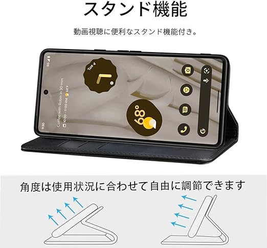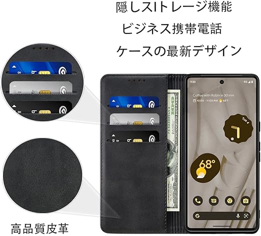 Google Pixel 9A ケース 手帳型 高質PUレザー Pixel 9A ケース Google Pixel 9A カバー ルピクセル7 ケース 手帳型 耐衝撃 内蔵マグネット開閉式 ベルトなし スマホケース おしゃれ カードポケット スタンド機能 便利 スプラット同梱 携帯ケース(ブラック) a