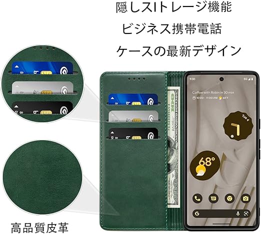 Google Pixel 9A ケース 手帳型 高質PUレザー Pixel 9A ケース Google Pixel 9A カバー ルピクセル7 ケース 手帳型 耐衝撃 内蔵マグネット開閉式 ベルトなし スマホケース おしゃれ カードポケット スタンド機能 便利 スプラット同梱 携帯ケース (グリーン) a