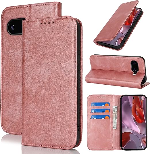 Google Pixel 9a ケース グーグル Pixel 9a 手帳型 Google ピクセル 9a カバー グーグル ピクセル 9a 手帳ケース Google Pixel 9a スマホケース Google Pixel 9a 携帯カバー case 適用 zouzt 合成皮革 財布型 カード収納 マグネット 横置き スタンド 二つ折り 手作り 大人っぽい 落ち着くデザイン - ピンク a