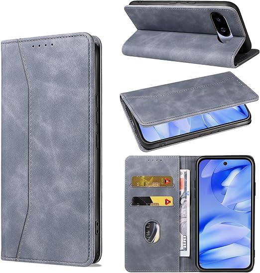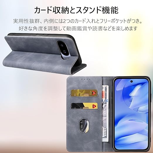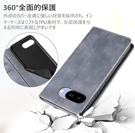 KWATUNG google pixel 9a 用 ケース 手帳型 おしゃれ グーグルピクセル9a 用 ケース 手帳型 肌感レザー ピクセル9a 用 携帯カバー 内蔵マグネット 耐衝撃 カード収納 スタンド機能 全面保護 Pixel 9a スマホケース Pixel 9a 用 手帳型ケース グレー a