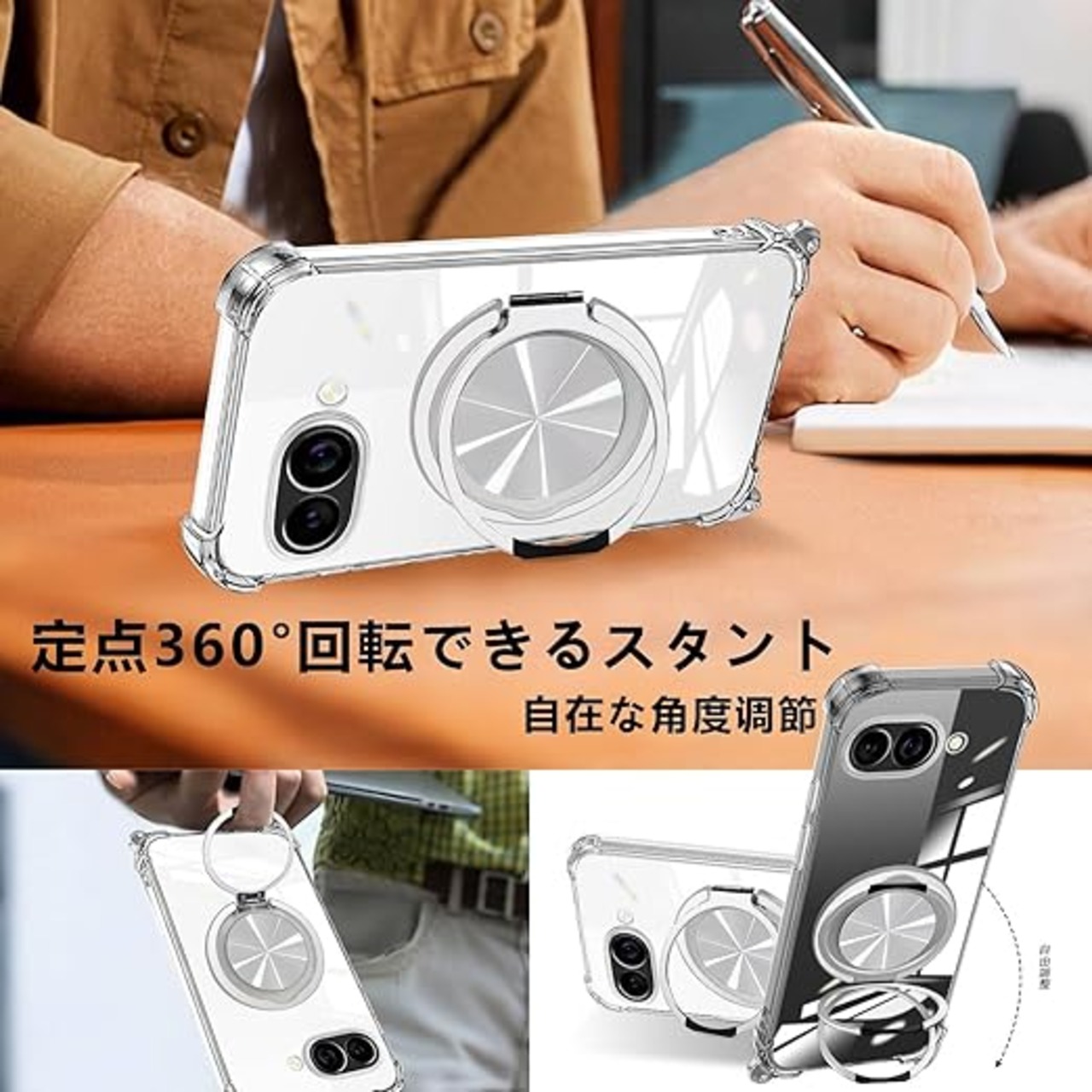 【対応機種】Google Pixel 9A/ピクセル9a専用設計。透明な背面リングはすべて高材質の材料で作られています。薄くて丈夫で柔軟性が高く、程よいグリップ感があり、本体の持つスリムさをできる限り損なわないよう設計しています。軽量化ステンレスを採用し、手に負担がなく、持ち心地抜群。スタンド薄型設計で使用しない場合閉じた状態でも違和感なく、ポケットに簡単に入れられ、手軽に持ち運べ、何時でも何処でも使えます。