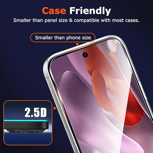 【対応機種】Google Pixel 9a の曲面エッジによるフィルムの剥がれ・浮き防止、またスマホケース装着スペース確保のため、曲面エッジ部分を覆わないデザインとなっています。