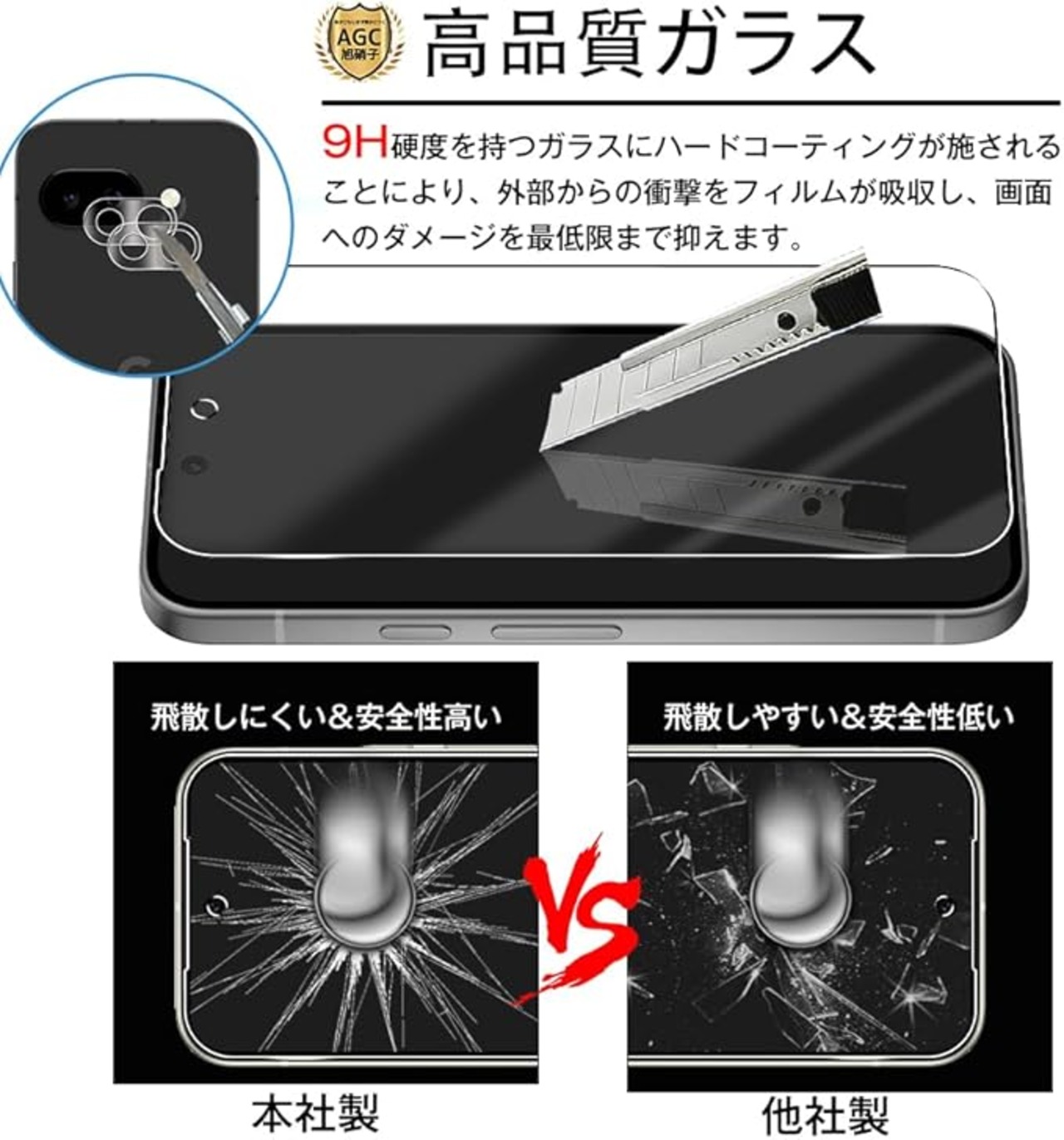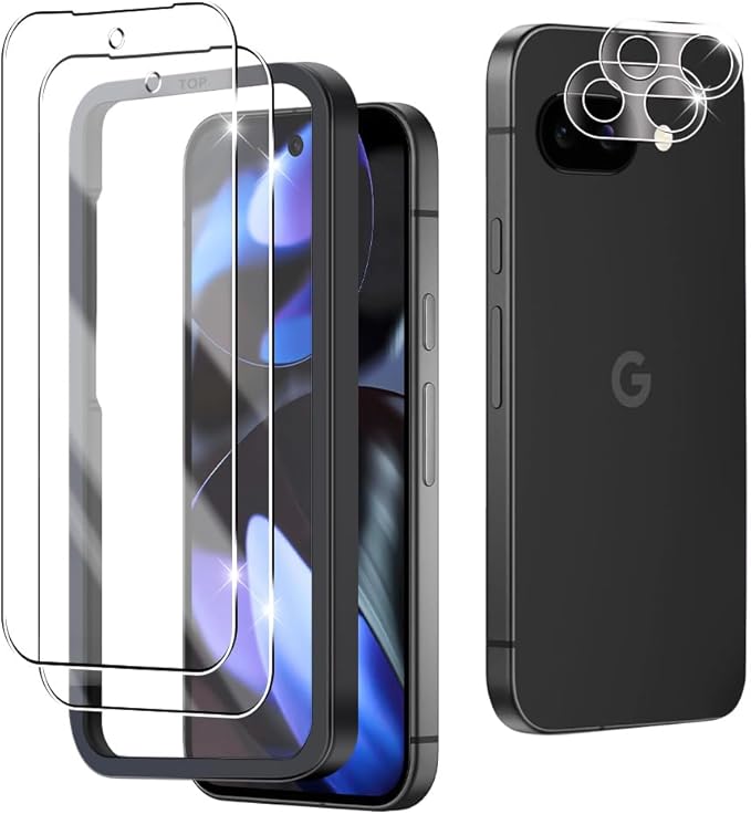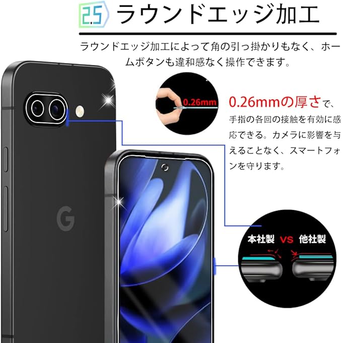 【4枚セット】対応 Google Pixel 9a 用 ガラスフィルム【2枚+2枚】レンズ保護フィルム付き 超薄型 ガイド枠付き Google Pixel9a用 日本旭硝子製 google Pixel 9a用 強化ガラスフィルム ピクセル9a用 液晶保護フィルム レンズ ケースと相性バッチリ 硬度9H 貼付け簡単 a