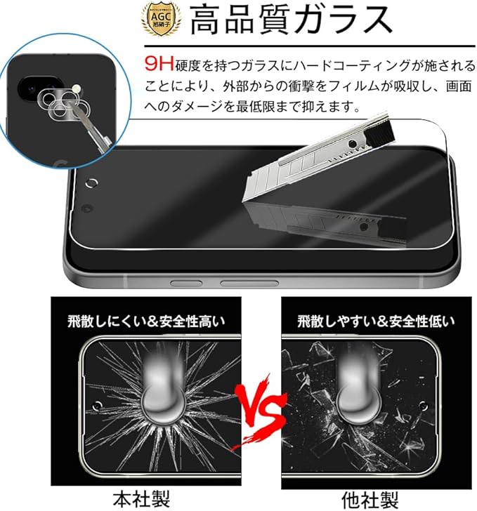 【対応機種&包装内容】 Google Pixel 9a 専用ガラスフィルム。強化ガラスフィルム【2枚】+カメラフィルム【2枚】+位置決め用のガイド枠【1個】+日本語取扱説明書+貼り付けキット。携帯電話の画面からレンズまで二重の保護,予備用・ご家族、友人とシェアしてもお使いいただけます!貼り付けキットは取付けをより容易にすることができ、インストール プロセスで泡を作り出しません、ご安心をご購入ください。位置決め用のガイド枠が付属していますので、ガラスフィルムをスクリーンに揃えるのが簡単になります。