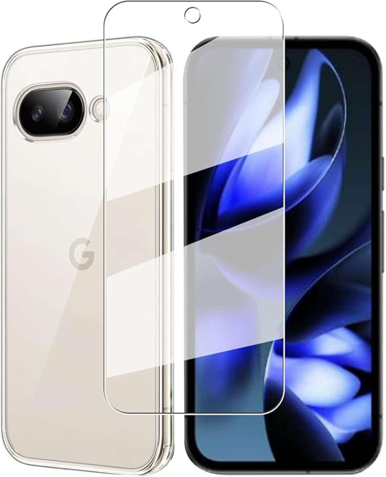 Koucfum 対応 Pixel 9A 用の ガラスフィルム+クリア ケース 透明 ソフト ピクセル9a 用 保護フィルム 1枚【旭硝子素材製】 硬度9H 高透過率 飛散防止 自?吸着 Pixel 9A TPU保護ケース 1枚 軽量 衝撃吸収 傷つけ防止 携帯便利 滑り止め【1+1枚セット】 a