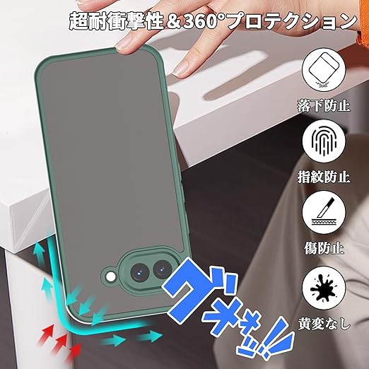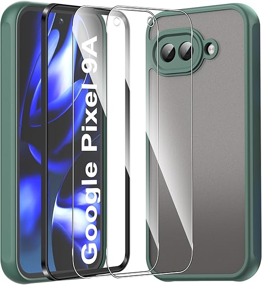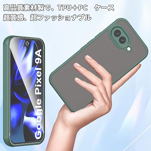 For Google Pixel 9a ケース 2枚ガラスフィルム付き Mosasa Google Pixel 9a カバー マット感 半透明 TPU+PC レンズ保護 薄型 指紋防止 落下防止 安心保護 軽量 全面保護カバー (グリーン) a