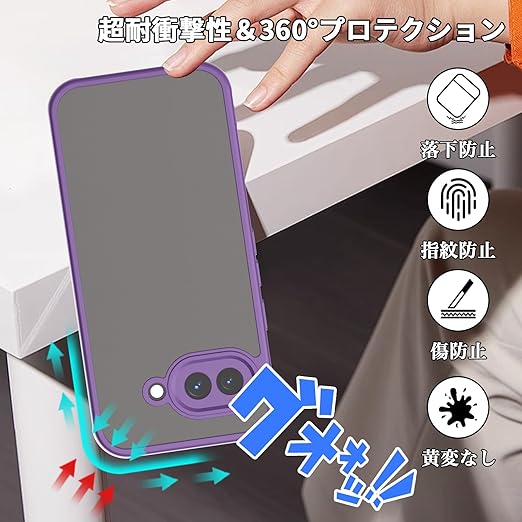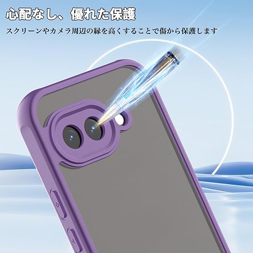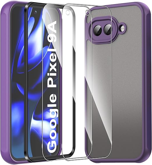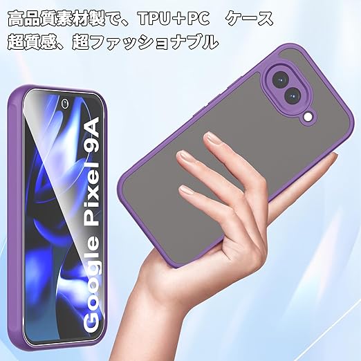 For Google Pixel 9a ケース 2枚ガラスフィルム付き Mosasa Google Pixel 9a カバー マット感 半透明 TPU+PC レンズ保護 薄型 指紋防止 落下防止 安心保護 軽量 全面保護カバー (パープル) a