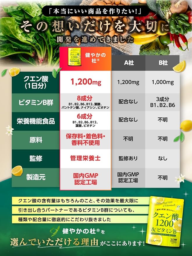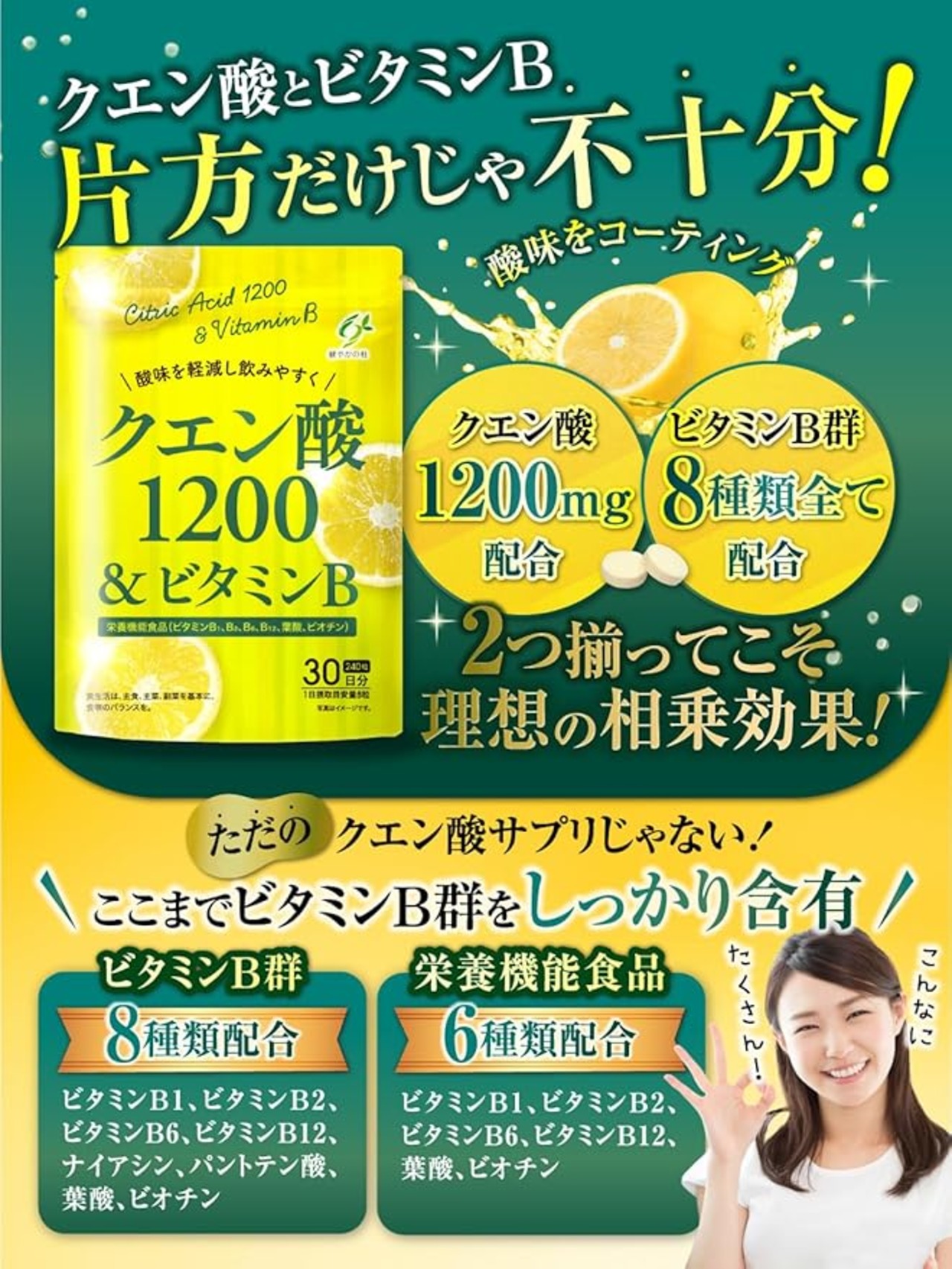 健やかの杜 クエン酸 ビタミンB サプリ 【管理栄養士監修×クエン酸1200mgと8種のビタミンB群】栄養機能食品 240粒30日分 (1袋) a
