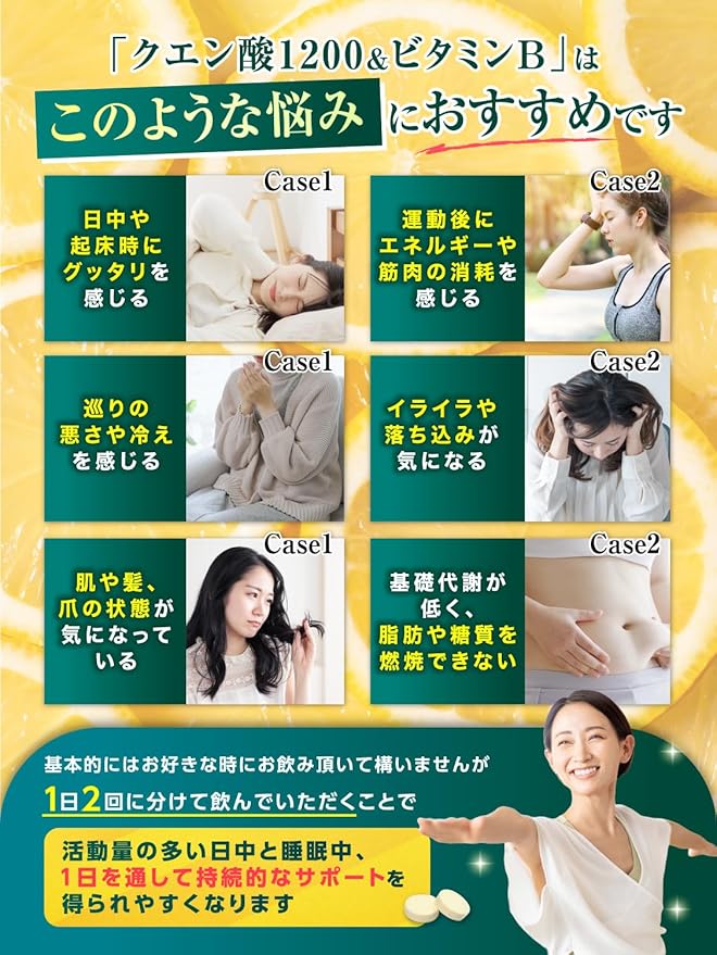 【クエン酸1200mgと8種のビタミンBビタミン群を配合】 ただのクエン酸サプリではありません!クエン酸の含有量は業界屈指の1,200mgに8種類のビタミンB群全てをしっかり配合!その内6種で栄養機能食品の基準を満たしております。飲みやすさにもこだわり、自然な酸味を感じる程度に粒をコーティングしております。