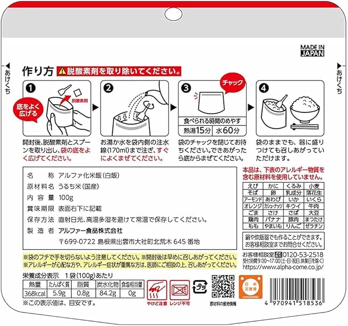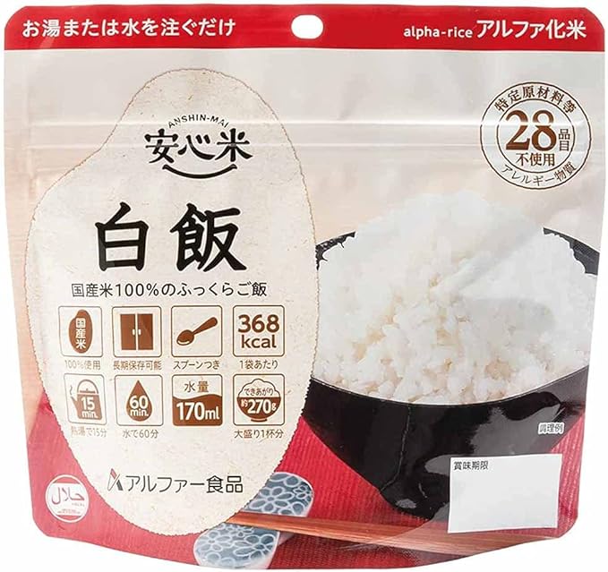 安心米 白飯 【非常食】【常備用】【長期保存】【アルファ化米】100グラム (x 5) a