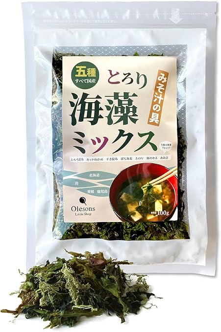 オルソンズリトルショップ 味噌汁の具 乾燥 5種の国産海藻 とろり海藻ミックス たっぷり100g 昆布 わかめ めかぶ 他 a