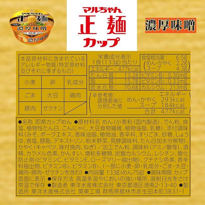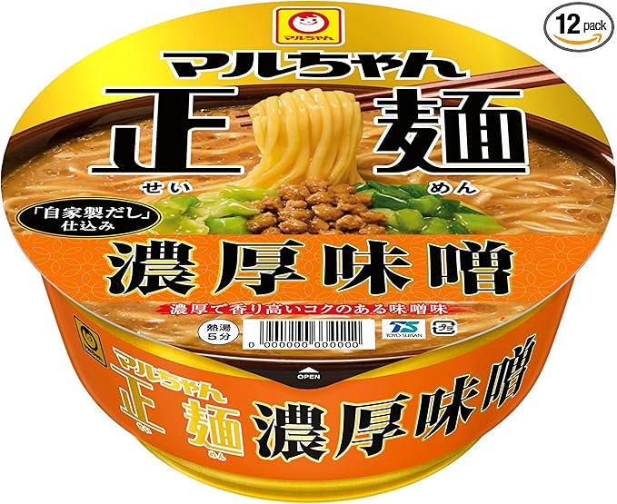 マルちゃん正麺 カップ 濃厚味噌 (133g×12個 / カップ麺) 即席 インスタントラーメン (生麺のような弾力食感 × 香り高い濃厚な味噌スープ) 箱買い ラーメン 東洋水産 a