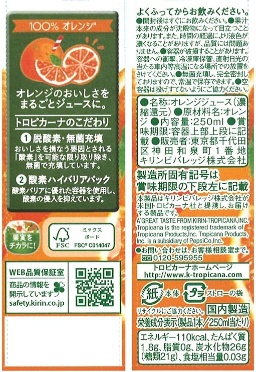 100% オレンジ 250ml×24本 パック a