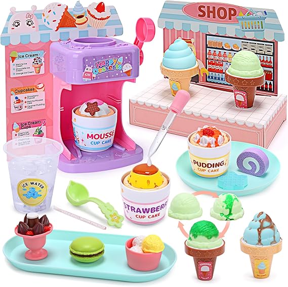 【豊富なおままごとセット&DIY可能】このセットでは、アイスクリームとカップケーキの両方を楽しめます。さまざまなアクセサリーを使って、自分だけのオリジナルアイスクリームやデザートを作ることができます。