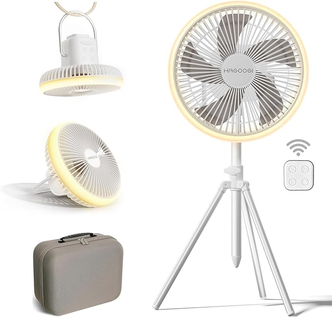 【2025新技術】HAGOOGI キャンプ 扇風機 セット dcモーター コードレス 10000mAh アウトドア 扇風機 1台5役 【卓上・吊り下げ・スタンド式・壁掛け・挿入式】 リモコン付き 専用収納ケース付き LEDライト 省エネ 軽量 静音 熱中症対策 【ホワイト】 a