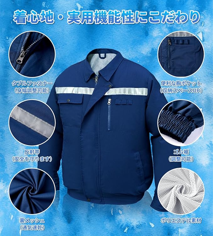 [FGTGGG] 空調作業服 ファン付き 40000mAh大容量バッテリー ファン付き作業服 冷却服 3D循環送風 3段階風量調節可 通気 サイズ調節可 最大20時間送風 長袖 UVカット PSE認証済 熱中症予防 猛暑対策 男女兼用