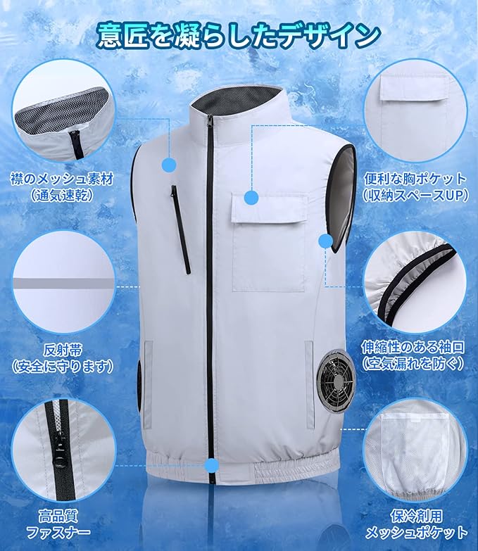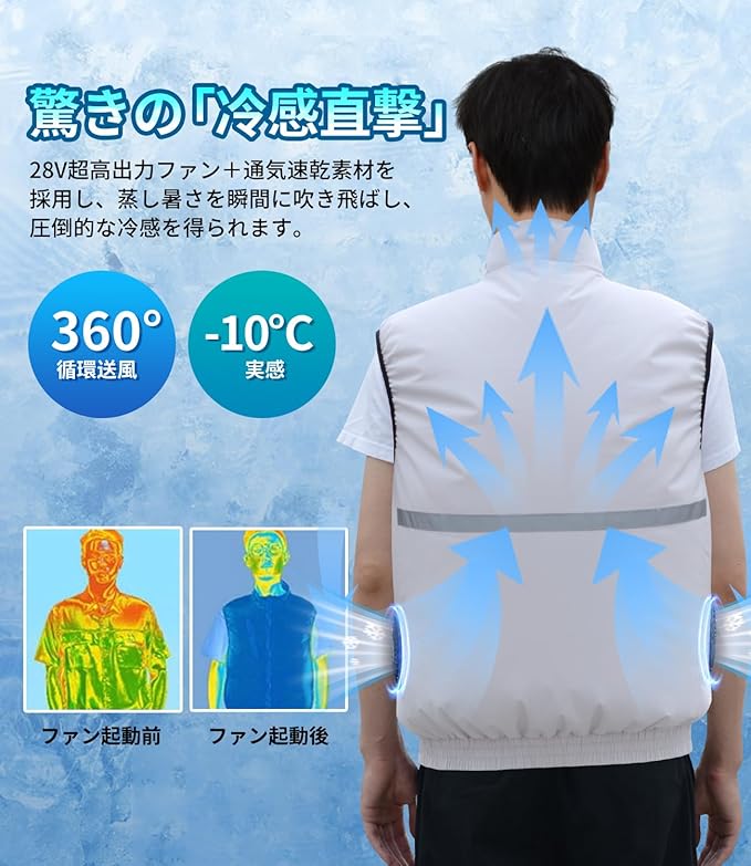[AGGOZ] ファン付きベスト 空調作業服【28V超高出力ファンと30000mAh大容量バッテリー付き】 4段階風量調節可 最大28時間連続稼働可能 UPF50+吸汗速乾 ファン付き作業服 熱中症予防 猛暑対策
