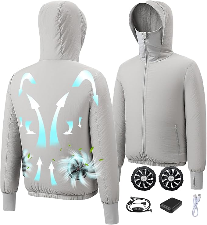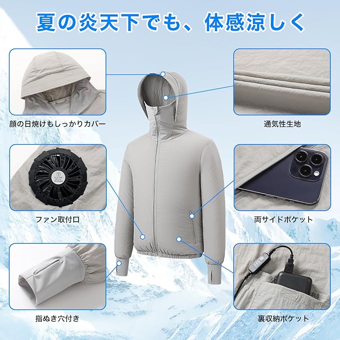 [YORIYOI] 空調作業服 長袖 レディース メンズ ファン付き作業服 大容量バッテリー ファンバッテリーセット 女性用 作業服 帽子付け 冷風服 3D循環送風 3段階風量調節可 作業着 熱中症対策 b