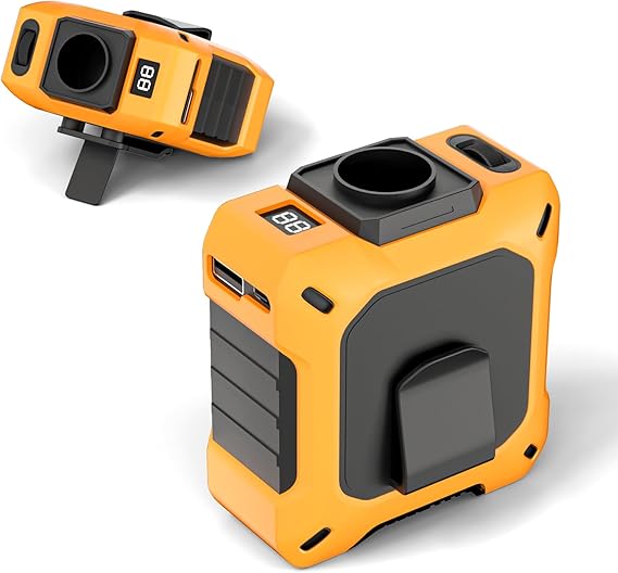 ViSSKO ベルトファン 腰掛け扇風機 強力 携帯扇風機 1-100風速無段階調整可能 8000mAh緊急充電 MAX回転数18850rmp ウエストファン ブラシレスモーター採用 首掛け・腰掛け・卓上置き Type-C5V/2A急速充電 USB-A5V/2A出力 アウトドアスポーツ/屋外作業/熱中症対策-オレンジ色 a