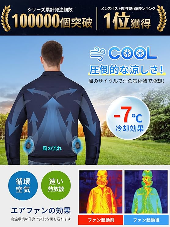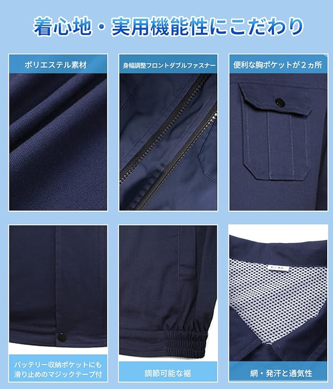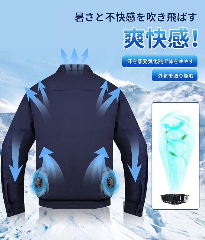 [KLIFE] 空調作業服 ファン付き 30000mAh大容量バッテリー ファン付き作業服 冷却服 3D循環送風 3段階風量調節可 通気 サイズ調節可 最大18時間送風 長袖 UVカット PSE認証済 熱中症予防 猛暑対策 男女兼用 a