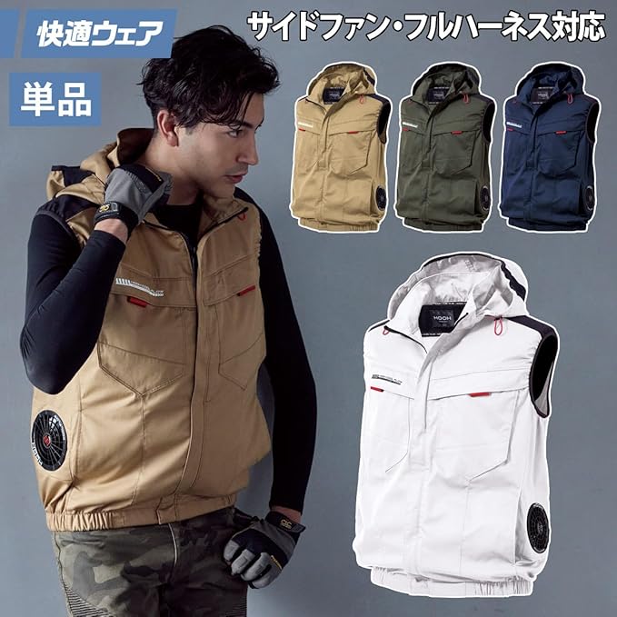 [武蔵野ユニフォーム] 村上被服 サイドファンフードベスト V2519 単品 快適ウェア 空調作業服 フルハーネス対応 <025-V2519> a