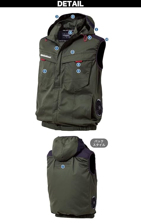 [武蔵野ユニフォーム] 村上被服 サイドファンフードベスト V2519 単品 快適ウェア 空調作業服 フルハーネス対応 <025-V2519> c