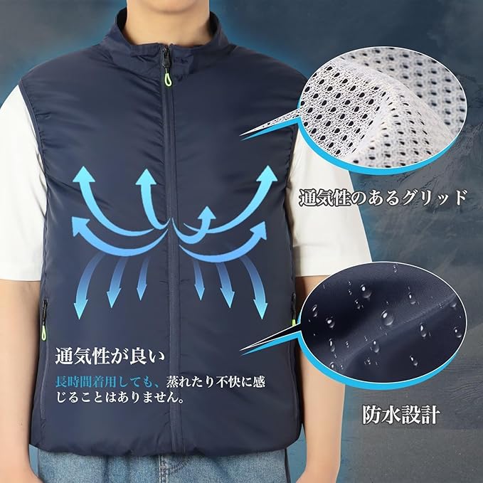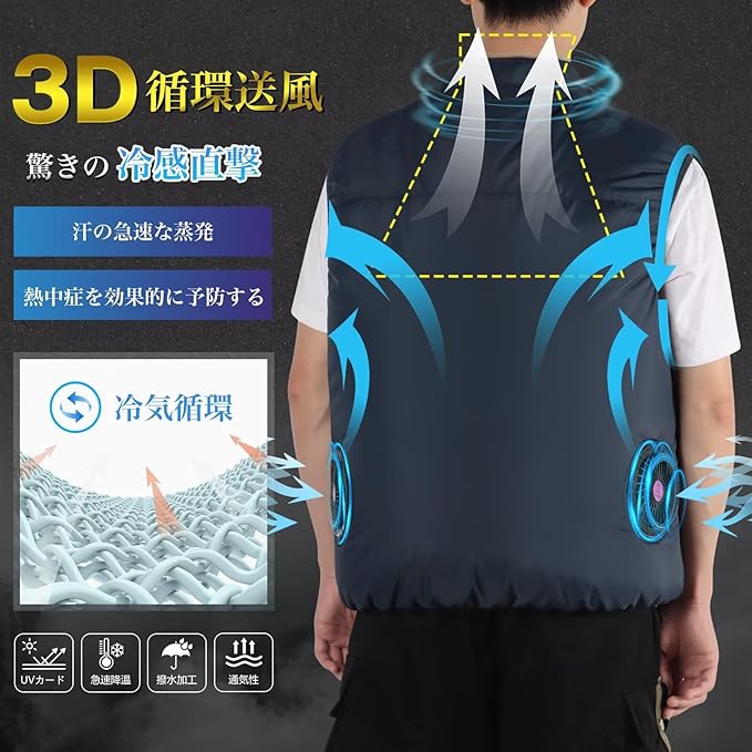 [inotenka] ファン付きベスト 空調作業服 ファン付きセット 冷却服 3D循環送風 大風量 作業ベスト ワークマン 熱中症対策 超軽量 大きいサイズ UVカット 男女兼用 a