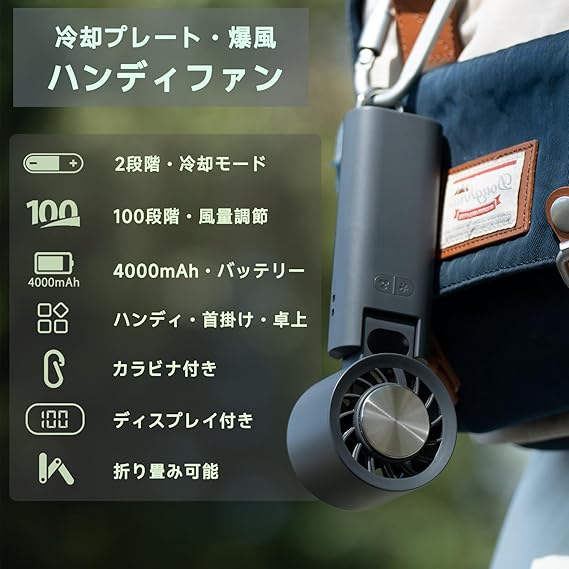 【冷却プレート ハンディファン】このハンディファンには独冷却プレートが内蔵され、冷却モードが2段階調節可能で、即効冷却が必要なシーンに最適できます。デスクワークやアウトドアでの熱中症予防に効果的な設計です。